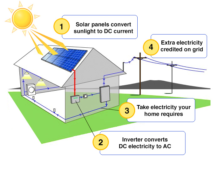 Once the solar energy has been converted from DC to AC electricity, it runs through your electrical panel and is distributed within the home to power your appliances. It works exactly the same way as the electrical power generated through the grid by your electric utility company, so nothing within the home needs to change. Since you still remain connected to your traditional power company, you can automatically draw additional electricity to supplement any solar shortages from the grid.